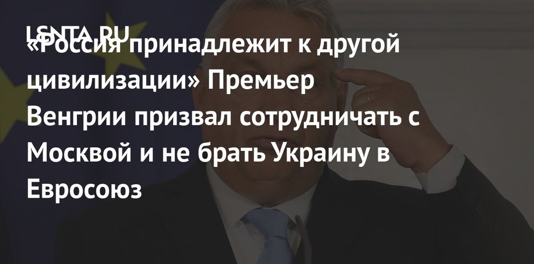 Премьер-министр Венгрии Виктор Орбан подчеркнул, что Россия принадлежит к другой цивилизации, однако это не повод отказываться от сотрудничества с Москвой. Он также напомнил, что большая часть мира отличается от Европы, и при отказе от сотрудничества с Москвой Европейский союз (ЕС) потеряет около третей земного шара. Орбан отметил, что придерживается позиции по разумному взаимодействию с Россией. Орбан призвал Брюссель отказаться от переговоров о вступлении Украины в ЕС.